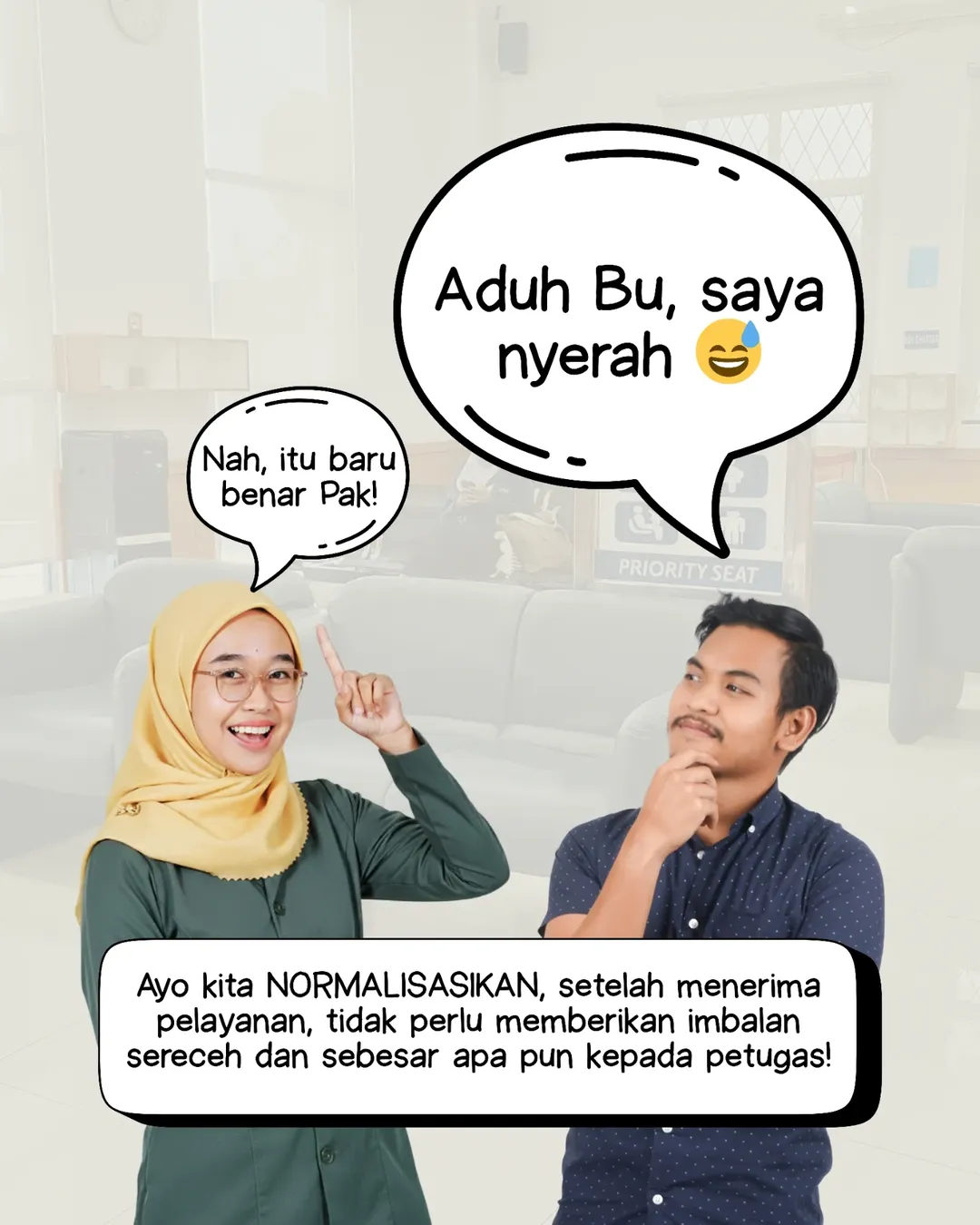 Semua petugas kami sudah berkomitmen memberikan pelayanan terbaik. Cepat, murah, transparan, dan berintegritas.