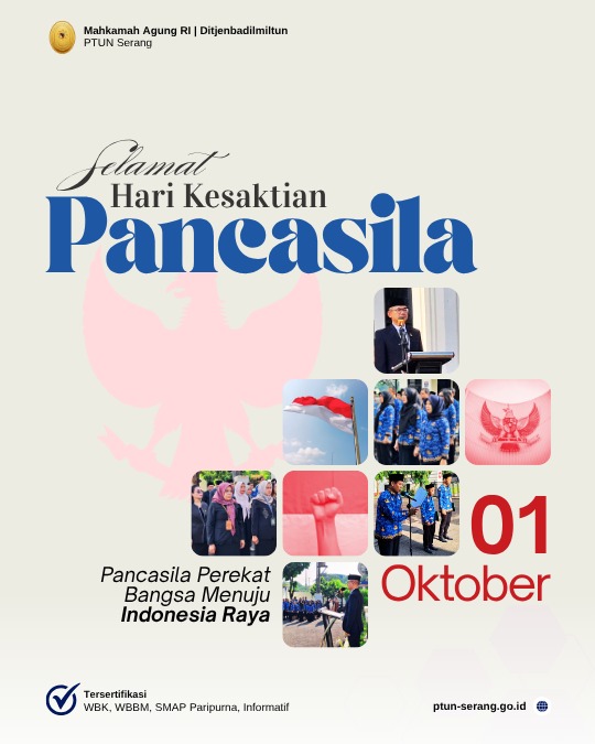 Pada 6 Oktober 2025, Ketua Pengadilan Tata Usaha Negara Serang Bapak Dr. Hari Hartomo Setyo Nugroho, S.H., M.H. secara resmi mengambil sumpah jabatan dan melantik Bapak Aswirman, S.H., M.H., sebagai Panitera Pengadilan Tata Usaha Negara Serang. Acara yang berlangsung dengan penuh khidmat ini dihadiri oleh seluruh jajaran Hakim, Pejabat Struktural dan Fungsional, Aparatur PTUN Serang, Pengurus serta Anggota Dharmayukti Karini, serta keluarga dari pejabat yang dilantik.